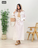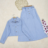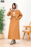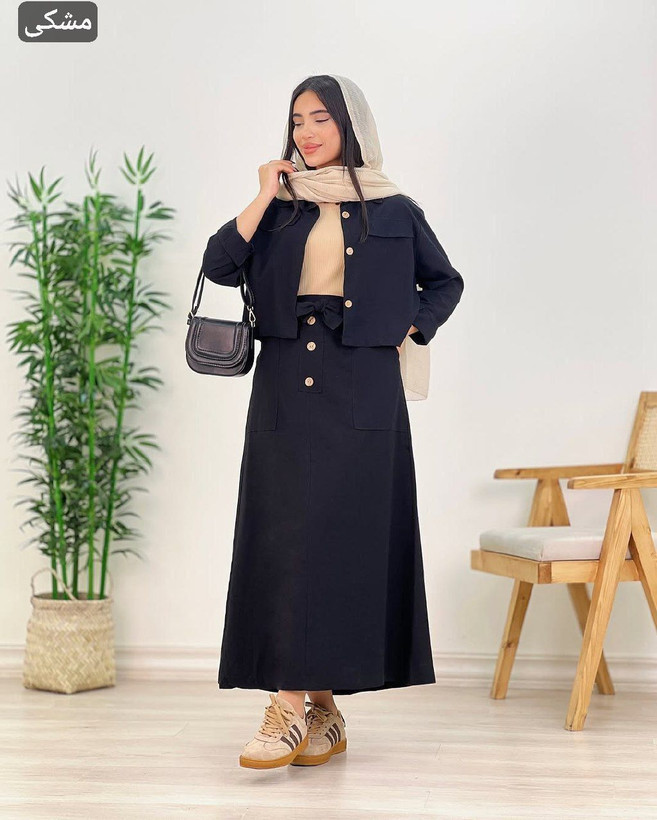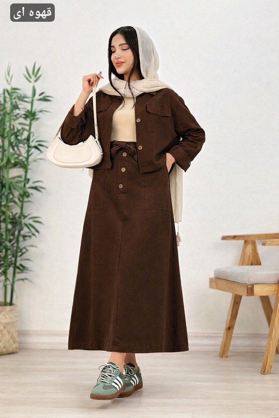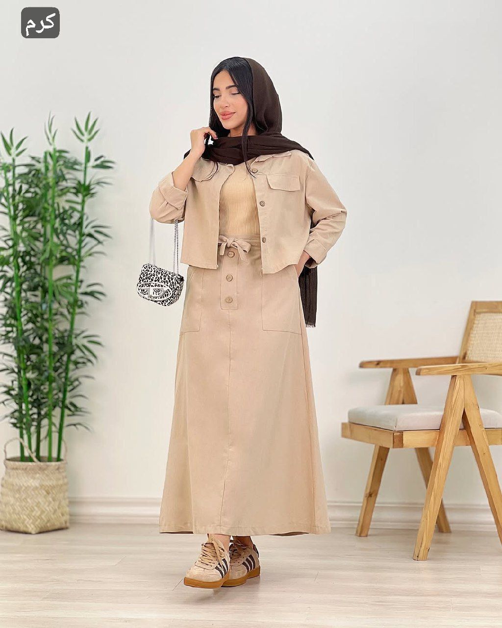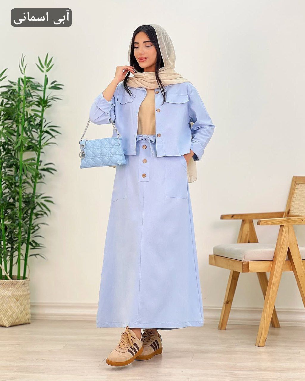 قد کت ۵۰✅️دورسینه ۱۰۸✅️ قد آستین از یقه ۶۹✅️ دور بازو ۳۸✅️قد دامن حدود ۱۰۰✅️ کمر پشت دامن کشی✅️ دو جیب دامن کاربردی✅️ دامن کمربند دارد✅️ دکمه های دامن نماست✅️
