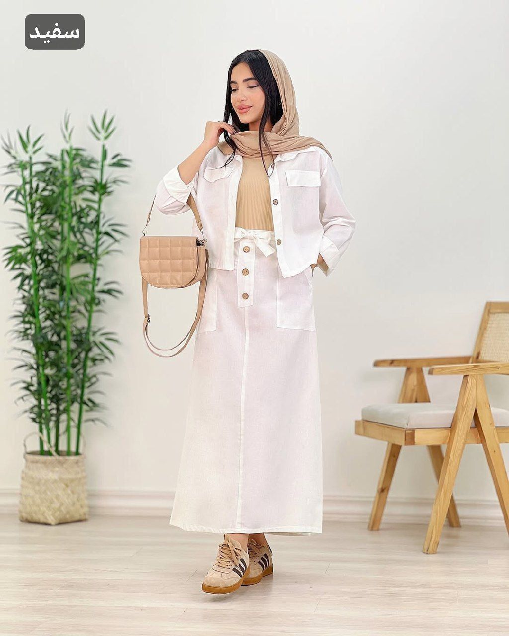ست کت و دامن کتان لنین نچرال اعلا با رنگبندی و کیفیت عالی 😍😃کد9662شایسته